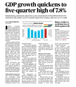 GDP growth quickens to five-quarter high of 7.8% (The Hindu)