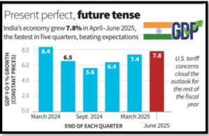 Context :India’s economy demonstrated strong resilience in the April-June quarter of the 2025-26 financial year, achieving a GDP growth rate of 7.8%, the highest in five quarters.