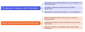 - The doctrine of credible minimum deterrence and No First Use (NFU) pledge underpin India’s responsible nuclear posture.