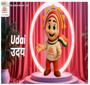 UIDAI has introduced ‘Udai (उदय)’ as an official mascot to humanize Aadhaar services and boost public engagement.
